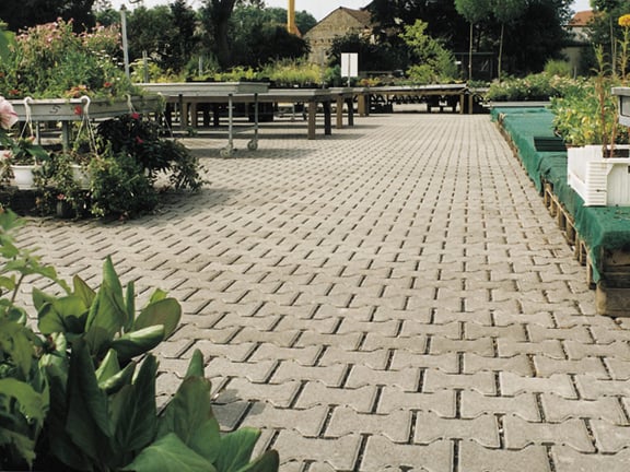 Mit einer Steinstärke von 80 bzw. 100 mm ist H-Form Ökopflaster vielen Aufgaben gewachsen. Am wichtigsten sind aber seine Drainfugen mit einer Breite von 10 mm, die Wasser versickern lassen und damit dessen Abfluss in die Kanalisation vermindern.